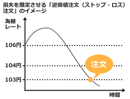 現在のドル円は、106円位ですが、今後103円まで下落したら損失を確定させたい(ロスカット)。