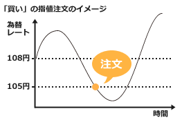現在のドル円は、108円位ですが、105円になったら買いたい。この場合は、指値注文の発注指定レートを